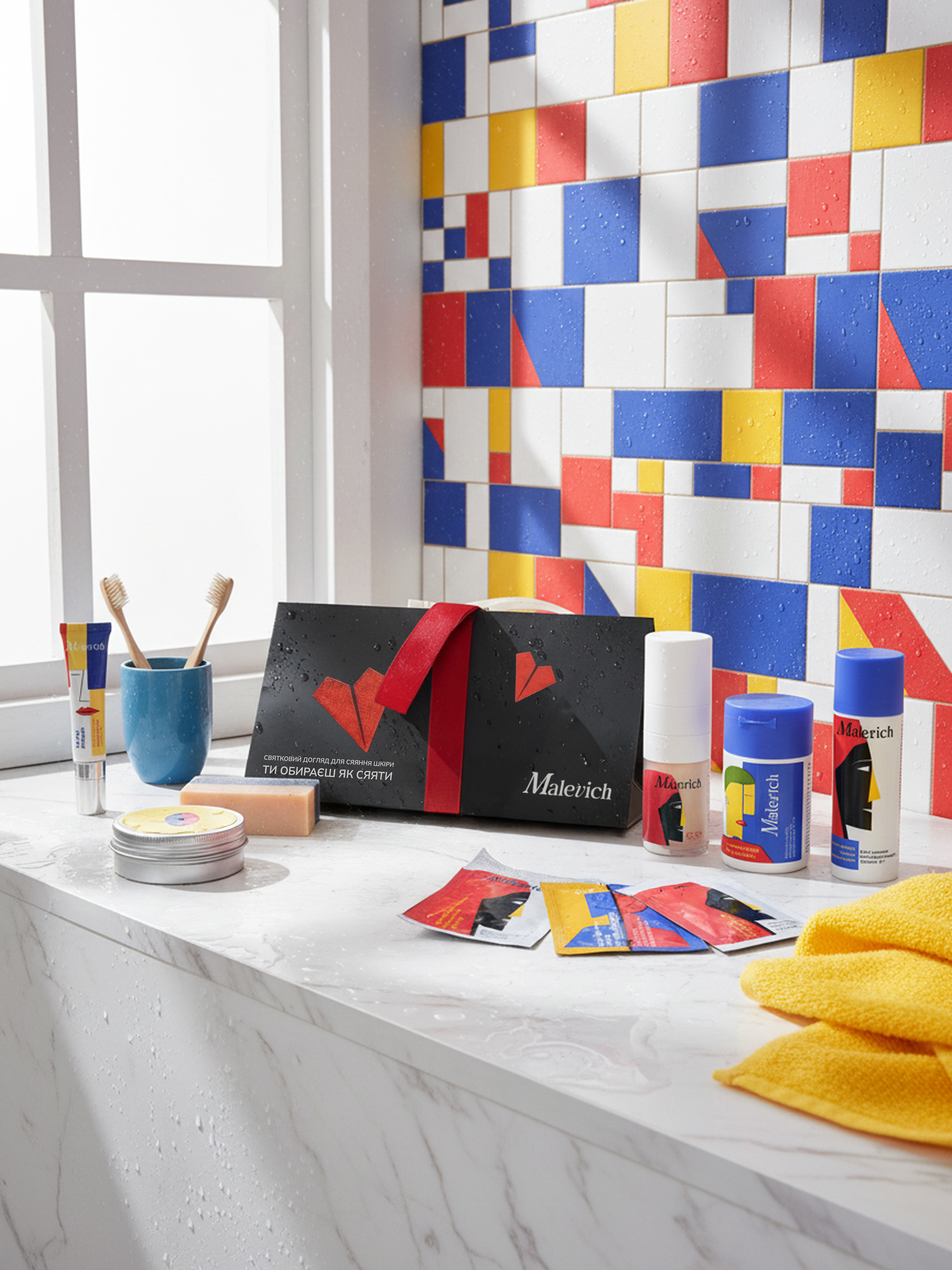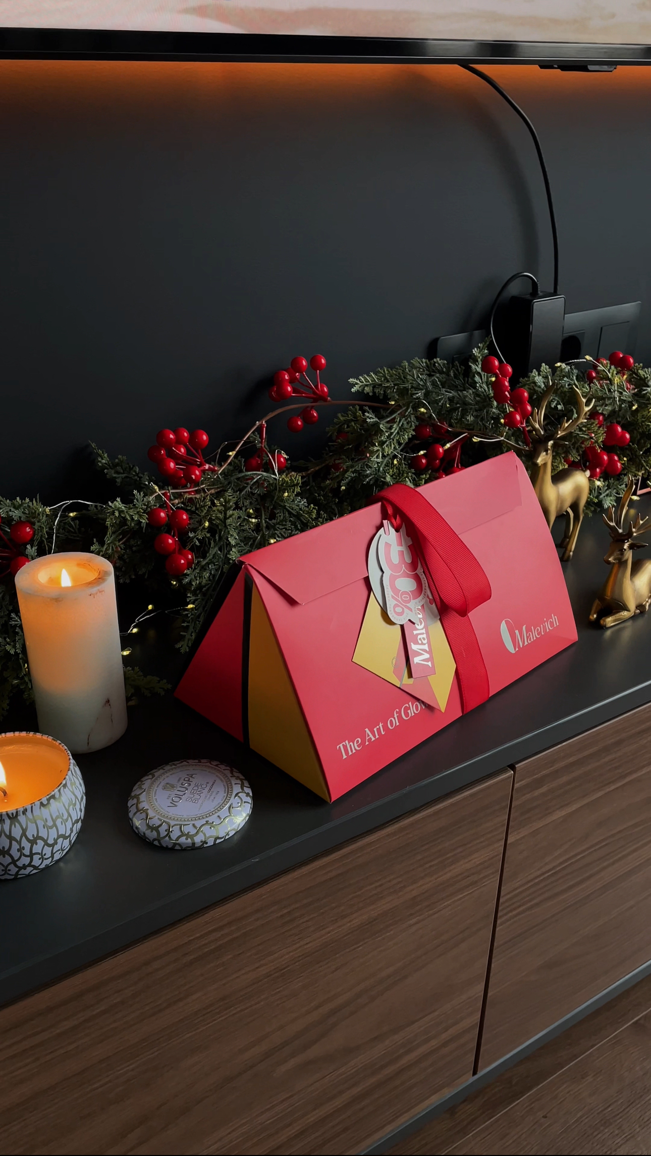 Повнорозмірні очищення, енергія вітаміна С та зволоження для шкіри і губ, три саше з топ продуктами та атмосфера свята із арома-свічкою та святковими об'ємними наліпками у надзвичайно стильному та яскравому пакуванні.